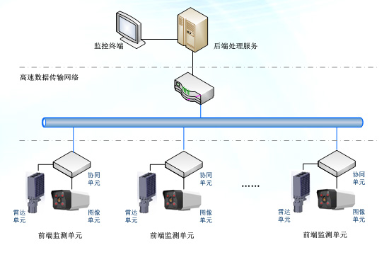 公司联合中科院某研究所研制的基于雷达的周界安全监测预警系统,不受天气影响,几乎零漏检率,虚警率较低,并且可以与视频融合构建优势互补的完整方案,实现高检测率、低虚警率的最佳监测效果。通过综合分析各类电子周界安全监测与预警系统的特性,本方案采用雷达与光学图像融合的检测技术构建分布式周界安全监测预警系统。综合利用雷达技术高检出率、低虚警率和全天候可用的技术特性,和光学图像监控技术多用途、结果易识读等技术特性的优势,整合形成全天候、高可用、用户友好的系统方案。
